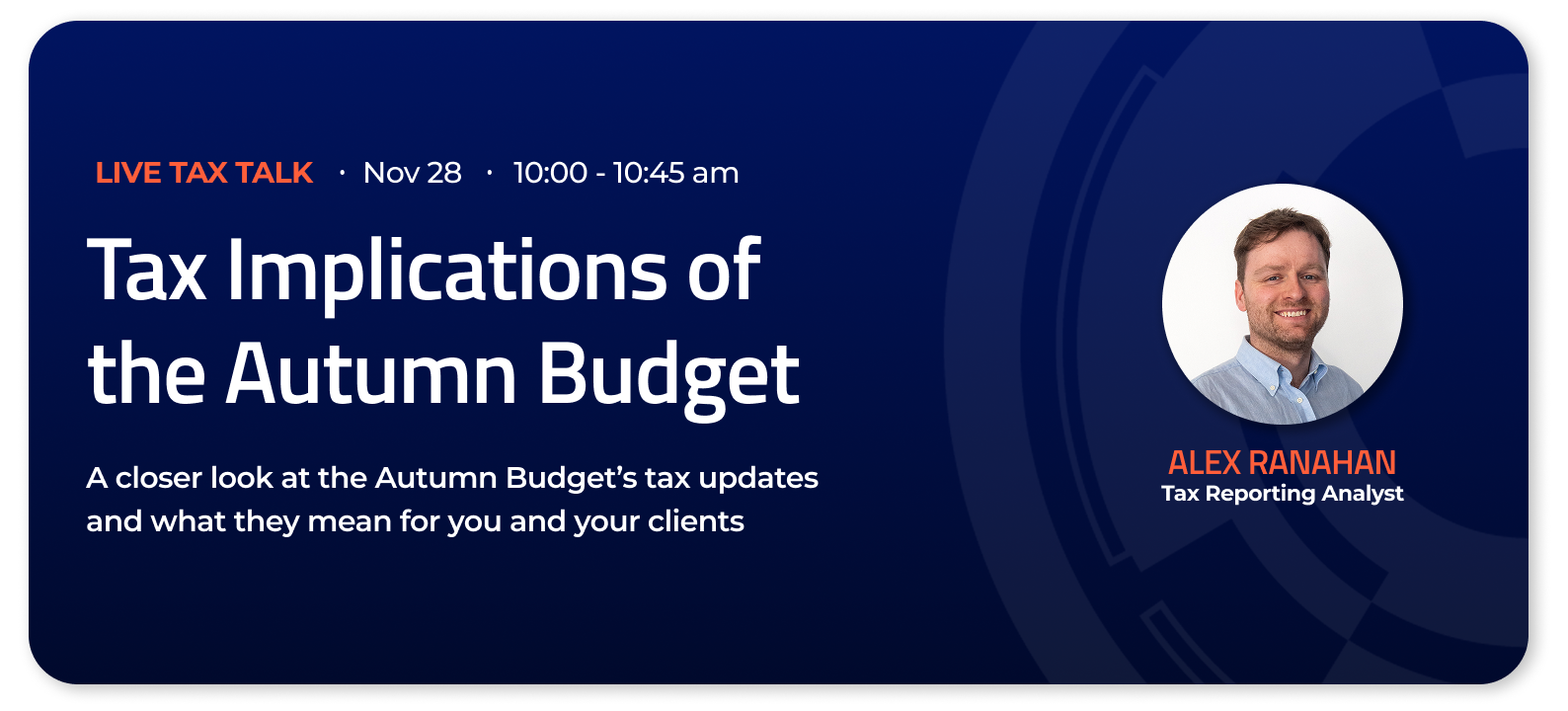 Join us for a live Tax Talk with tax analyst Alex Ranahan, who will:
